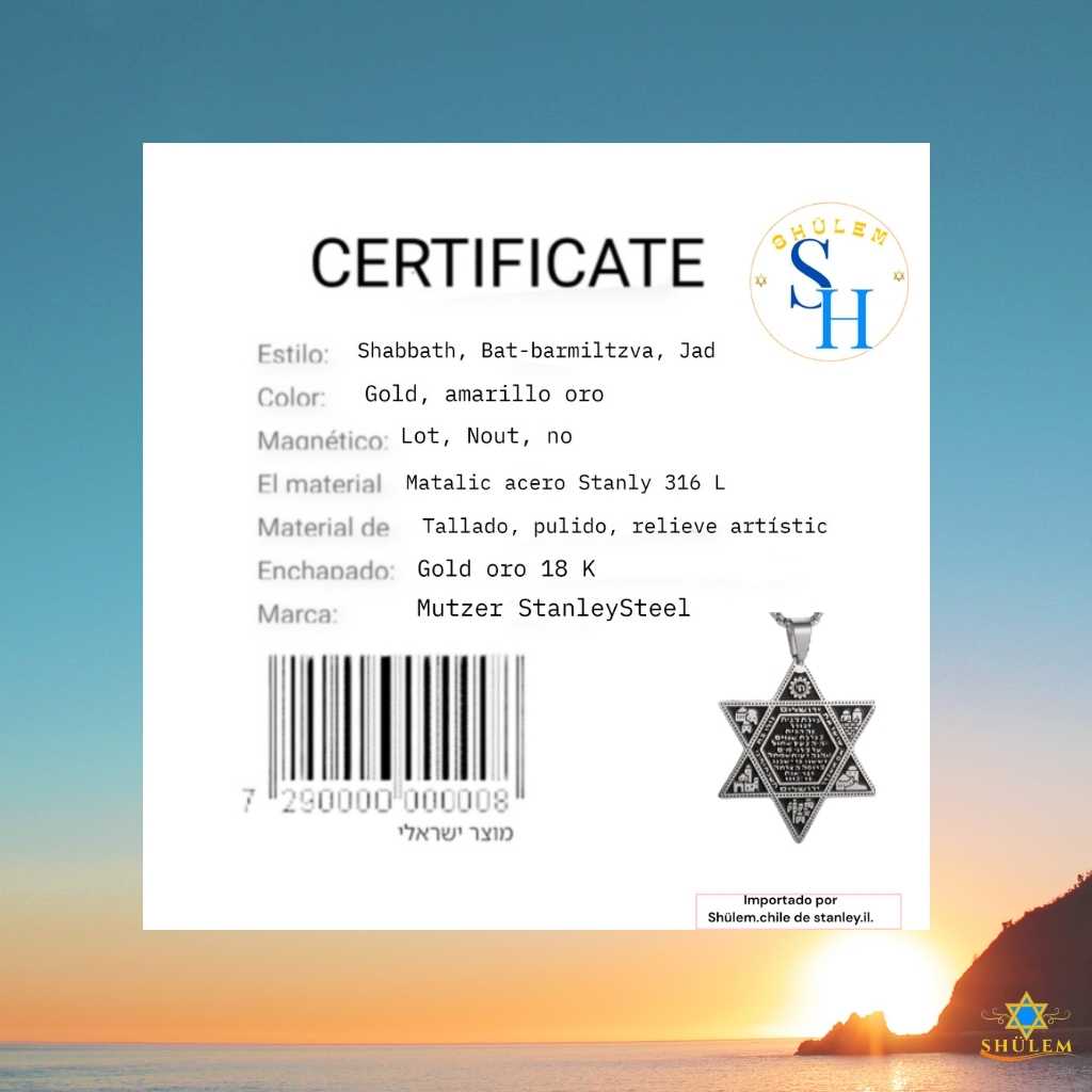 Nuestro elegante y particular Collar con Bendición Sacerdotal en Hebreo te sumerge en una pieza única que fusiona arte, fe e historia milenaria. Esta medalla que data desde la misma época del rey David presenta la Bendición Sacerdotal o (Birkat Kohanim) en hebreo; una antigua oración de protección y prosperidad, finamente tallada en un bello relieve artístico para ofrecer un impacto visual y espiritual profundo. Cada trazo ha sido cuidadosamente diseñado para transmitir paz, energía positiva y conexión trascendental, conocida en los espacios místicos como el collar de la protección y en los espacios religiosos y espirituales como el collar de la bendición. ¿conoces la historia de la Maguen original de los tiempos Davidicos? Conócela aquí
