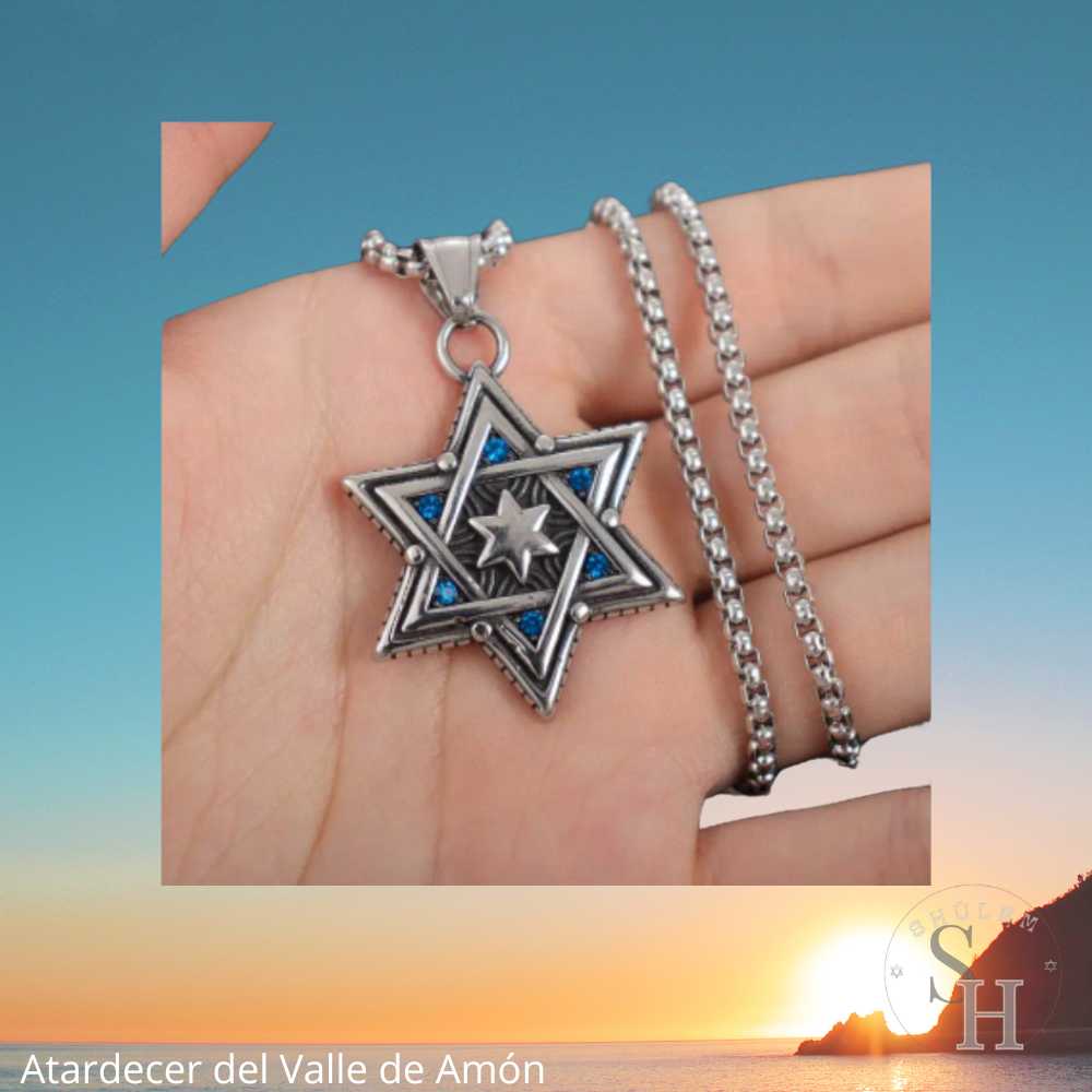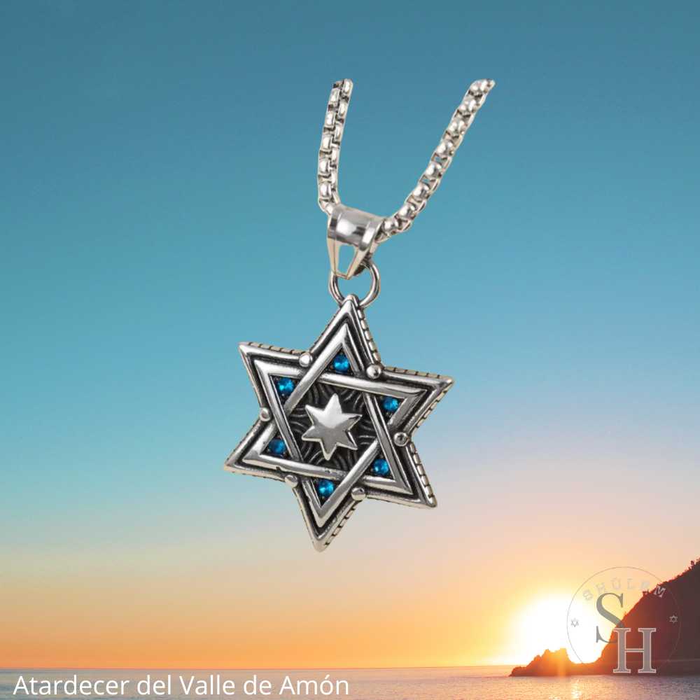 Lleva contigo la Estrella de David Eilat, símbolo de fe y protección, fusionada con una piedra que irradia calma y serenidad. Este colgante inspira, conecta con la tradición y te acompaña con un toque de historia y espiritualidad en cada momento.