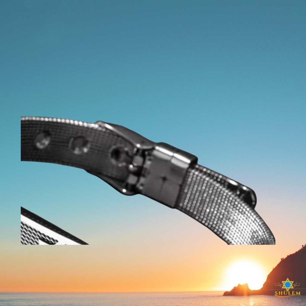La pulsera unisex con hebilla y Maguen David está confeccionada en acero inoxidable de titanium, un material reconocido por su durabilidad, resistencia y brillo impecable. Su tejido de malla metálica en forma de cadena ofrece un estilo contemporáneo, elegante y sencillo, pensado para quienes valoran la calidad sin renunciar a la comodidad. La hebilla ajustable permite un calce perfecto para cualquier muñeca, asegurando que se mantenga firme y cómoda durante el uso diario.