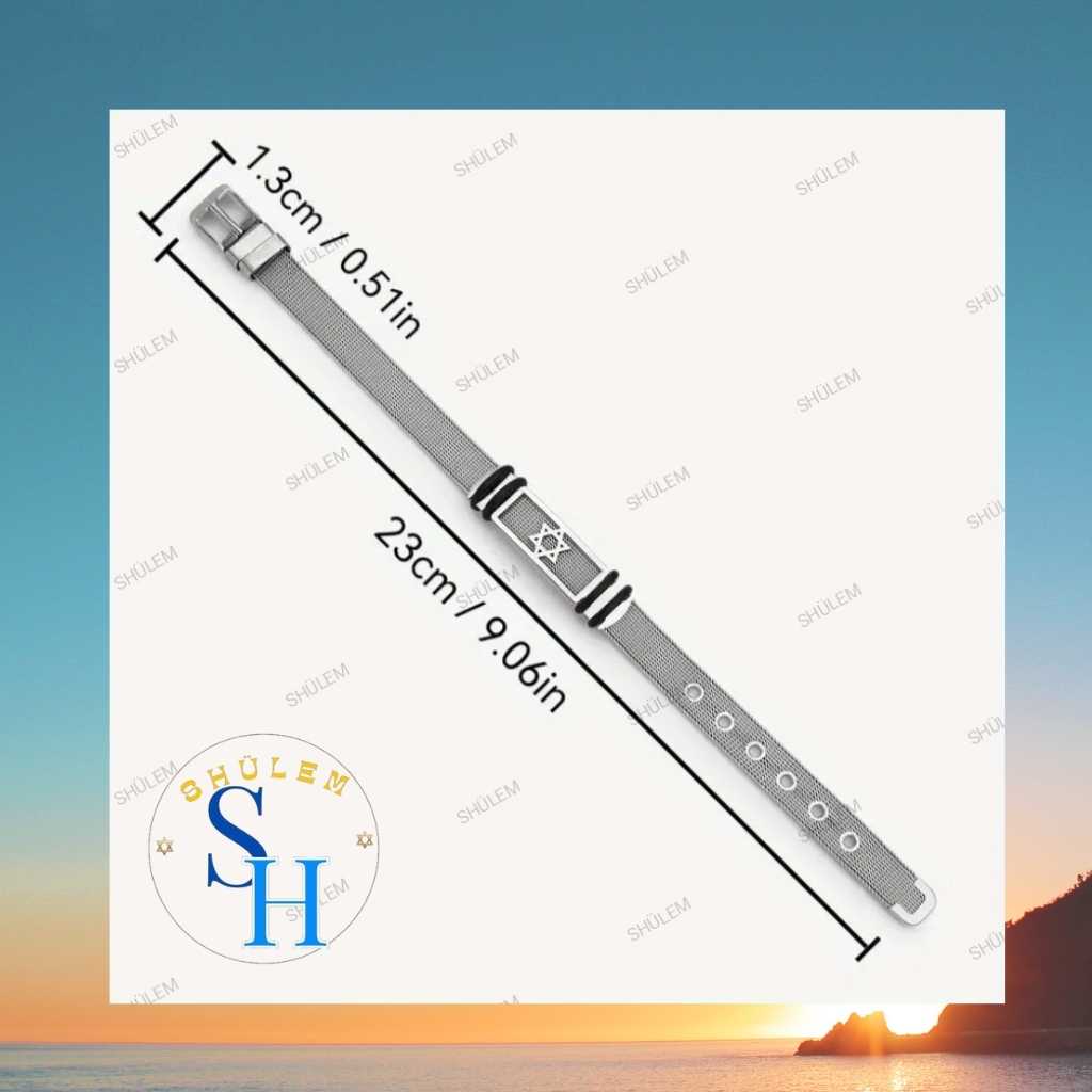 La Pulsera Unisex con hebilla y Maguen David es una opción perfecta para quienes desean regalar algo más que una joya: es un detalle que lleva consigo historia, identidad y propósito. Gracias a su diseño versátil, puede acompañar tanto atuendos formales como casuales, aportando siempre un toque de distinción y elegancia. Su tamaño de 23 cm x 1,3 cm se ajusta cómodamente a la mayoría de las muñecas, garantizando una experiencia de uso práctica y estilizada.